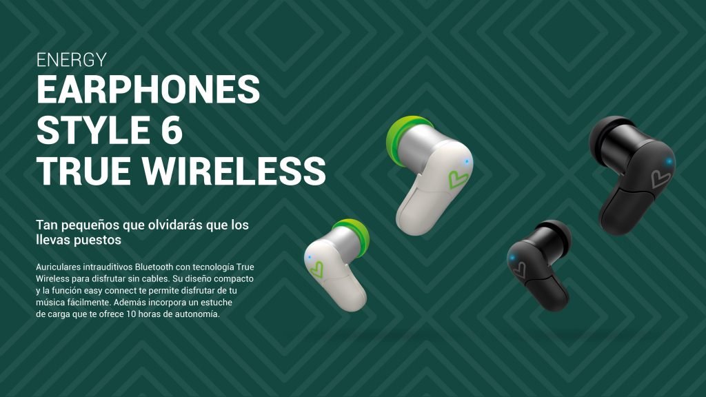 Auriculares intrauditivos Bluetooth con tecnología True Wireless para disfrutar sin cables. Su diseño compacto y la función easy connect te permite disfrutar de tu música fácilmente. Además incorpora un estuche de carga que te ofrece 10 horas de autonomía