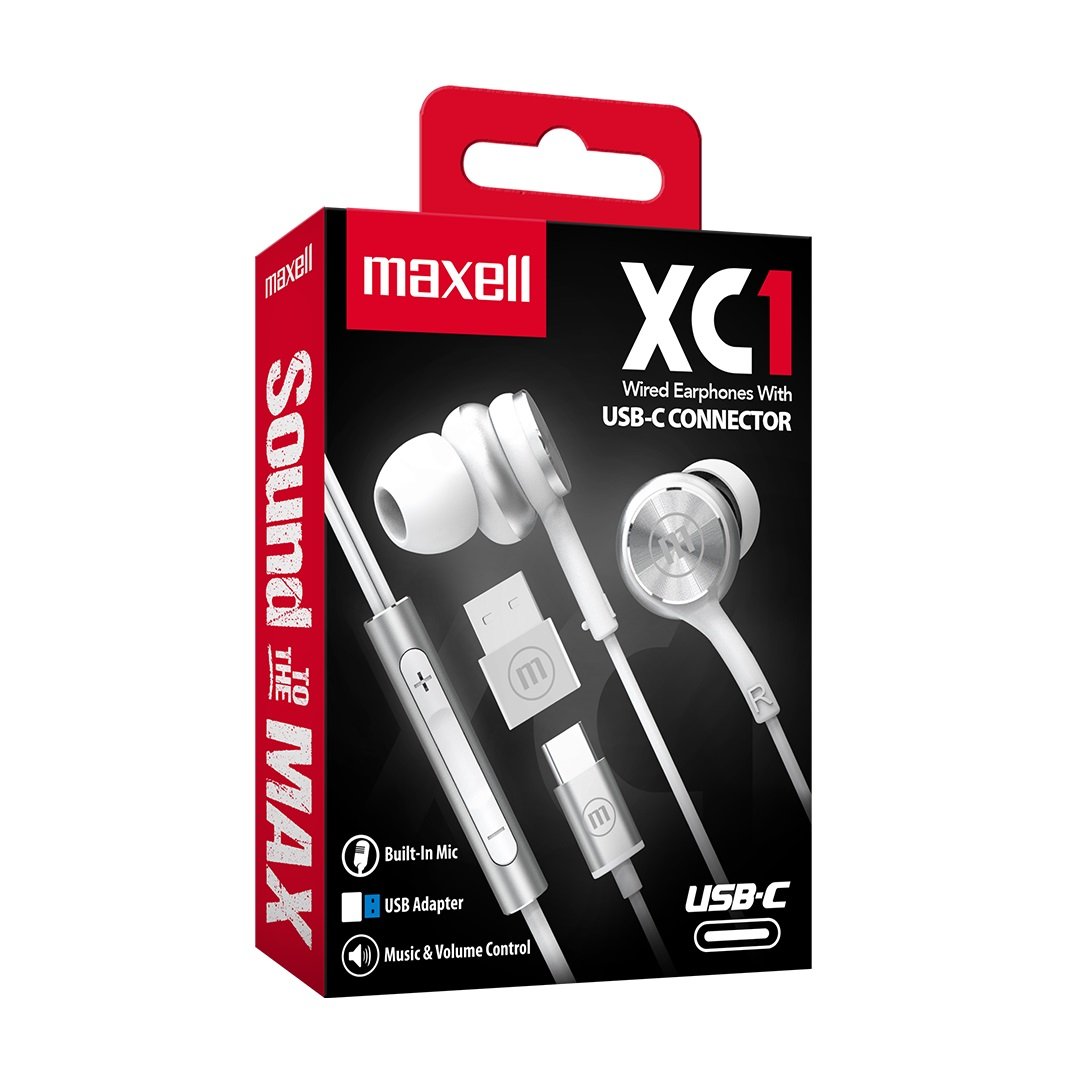 AUDIFONO MAXELL XC1 TIPO C Y ADAPTADOR USB, C/MIC BLANCO