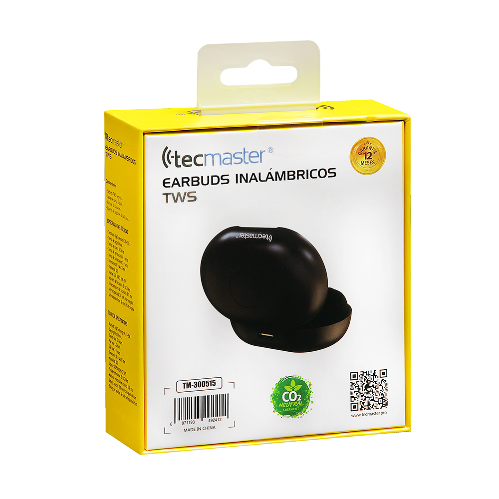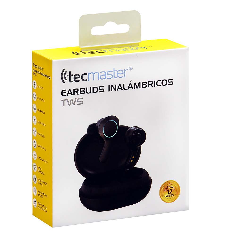 TECMASTER AUDÍFONOS RGB INTRAUDITIVOS TWS NEGRO