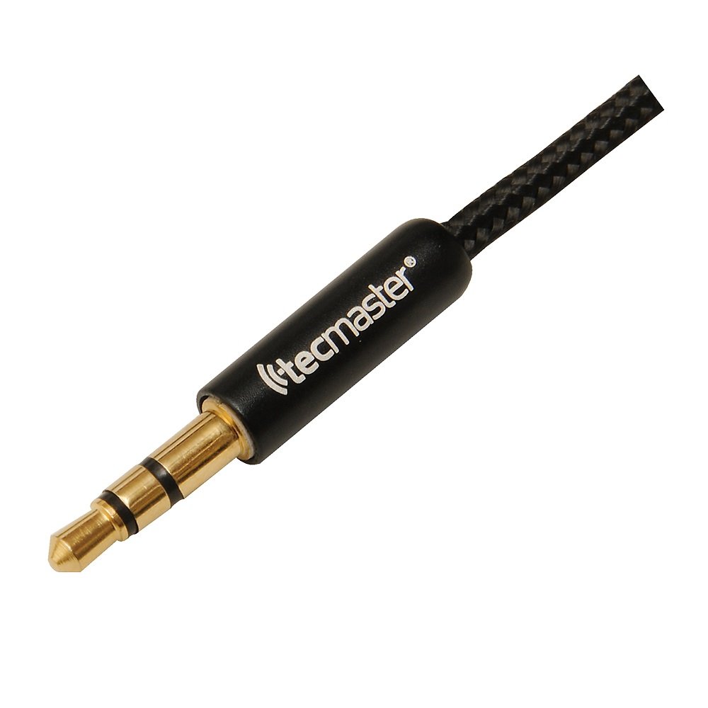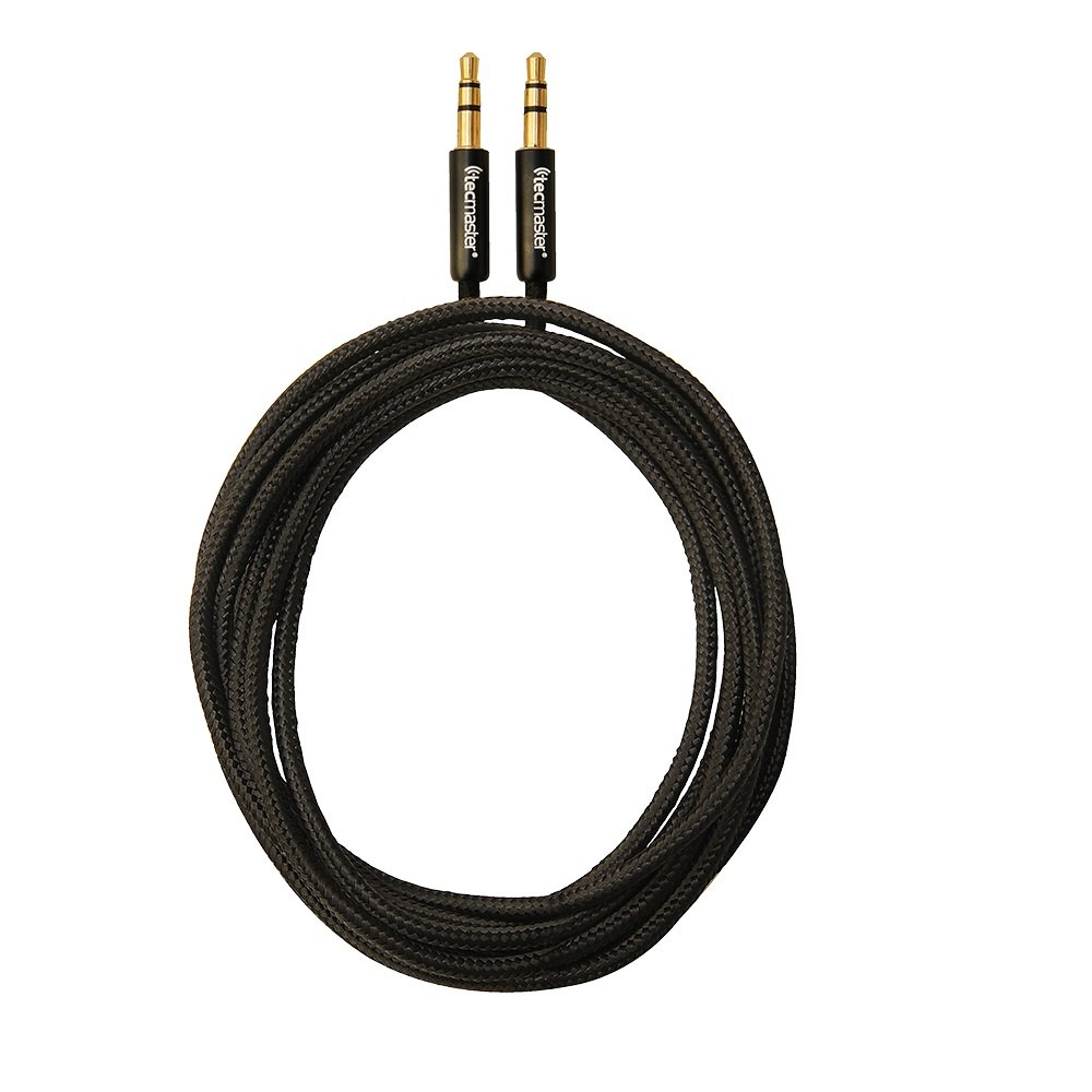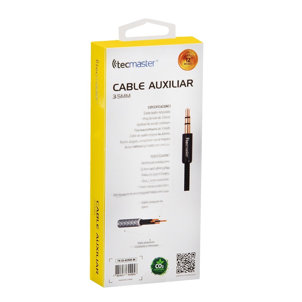 Cable de audio estéreo plug de 3.5mm. Envoltura del cable: textil reforzado. Diseño delgado para adaptarse a la mayoría de los teléfonos y tablets con carcasa.