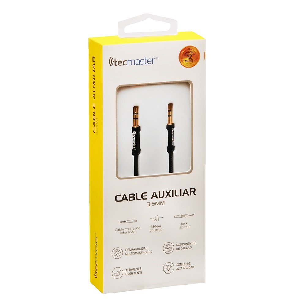 Longitud 180cm. Plug macho de 3,5 mm a Plug macho de 3,5 mm. Plug dorado entrega alta fidelidad de sonido