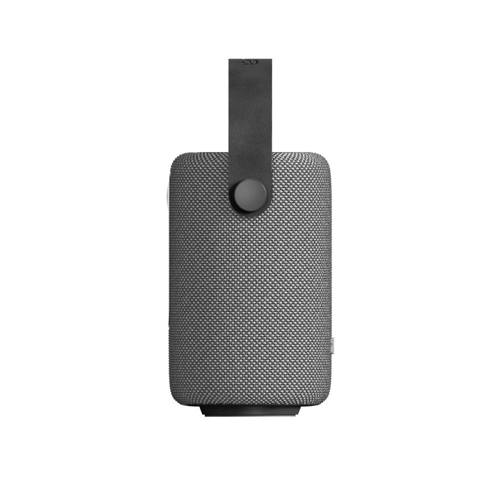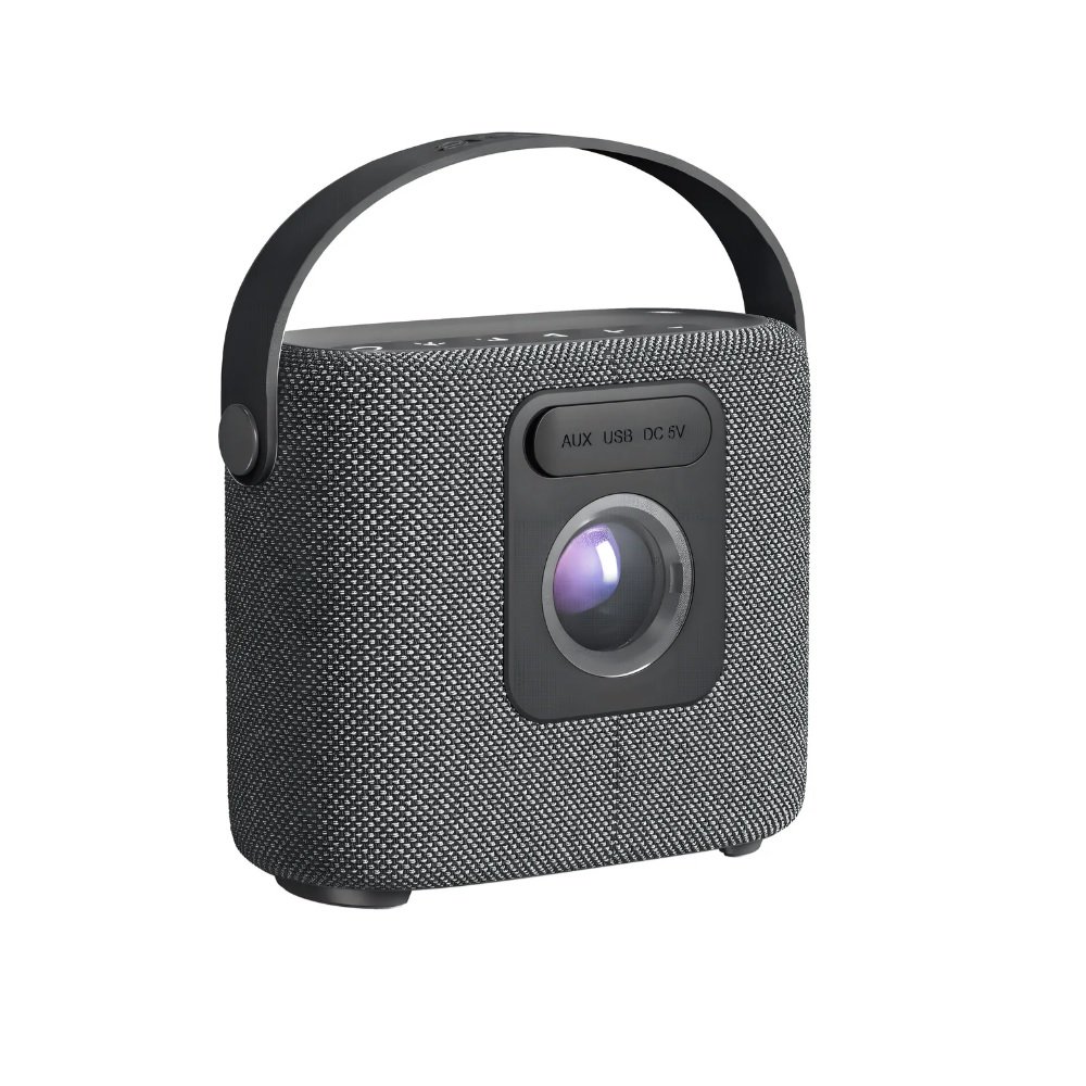 Mini parlante con lámpara de atardecer para que la experiencia no se detenga ni siquiera de noche. Disponible con correa de cuerina en color negro.
