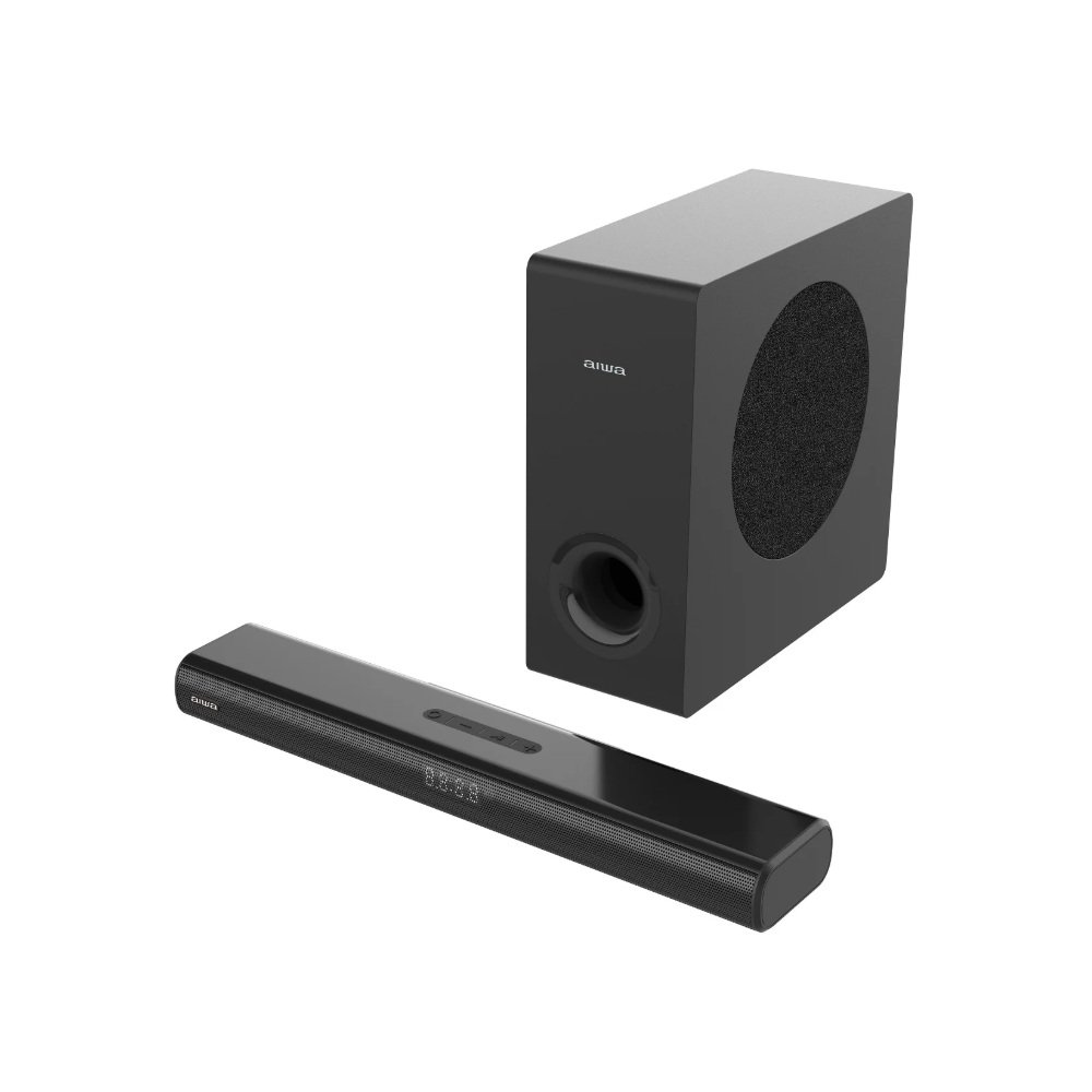 Potencia compacta que emociona: la barra de sonido AIWA AW-SBC800W con subwoofer y 80W de potencia total te envuelve en un sonido profundo y vibrante que transforma cada momento en una experiencia inolvidable.