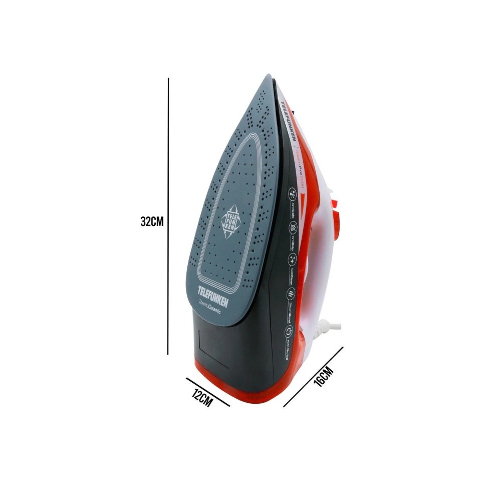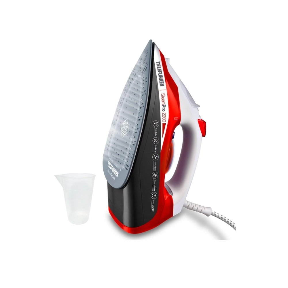 SteamPro 2200 de TELEFUNKEN es una plancha a vapor con estructura resistente y duradera, cuenta con base ThermoCeramic antiadherente y botón de auto limpieza que permite limpiar la base de cerámica para tener un rendimiento óptimo. Posee un mecanismo anti sarro para evitar bloqueos a la hora de rociar y expulsar el vapor, además su sistema ante goteo impide filtraciones no deseadas. La SteamPro 2200 cuenta con Tecnología SmartTemp, selector de temperatura compatible con sintético / seda / lana / algodón / lino.
