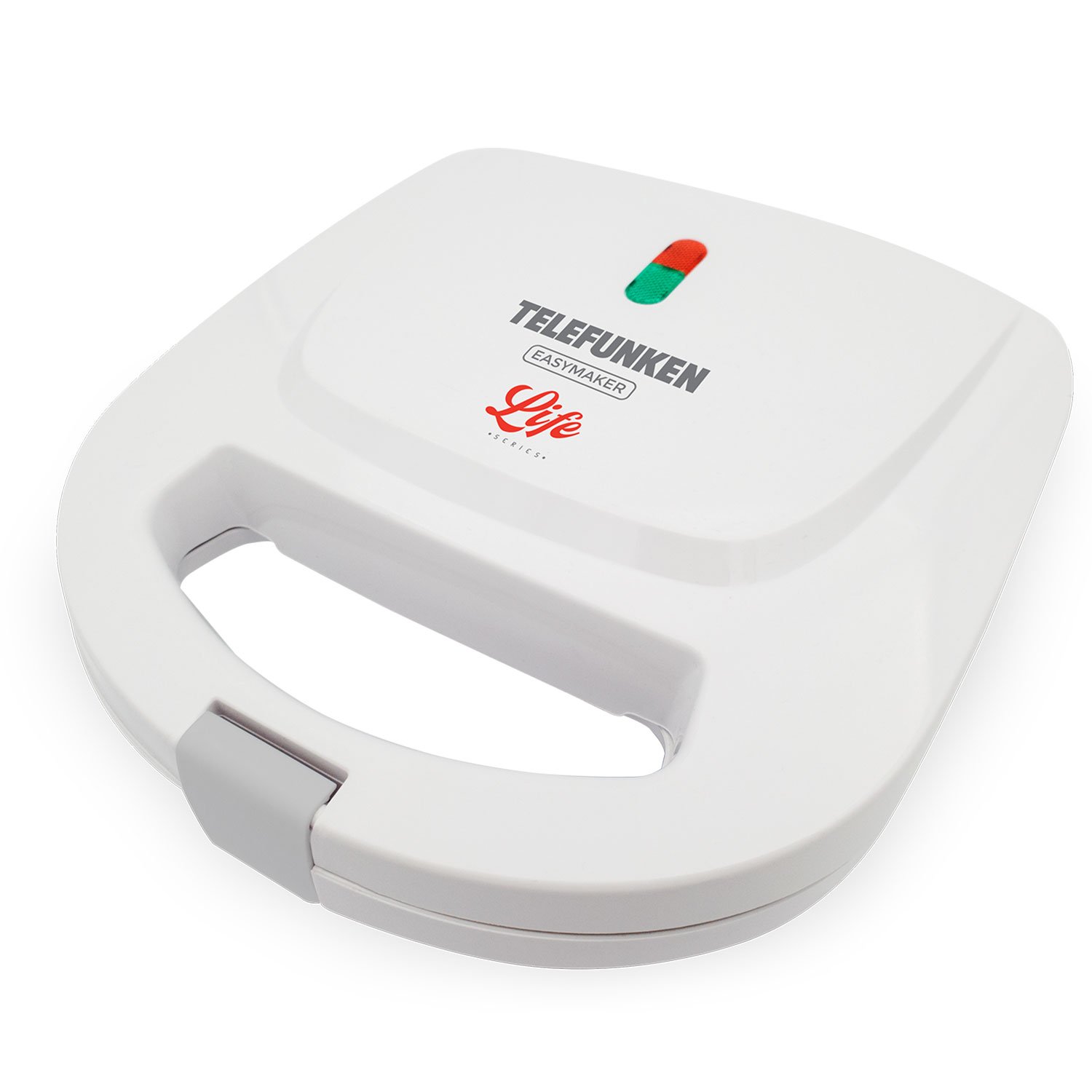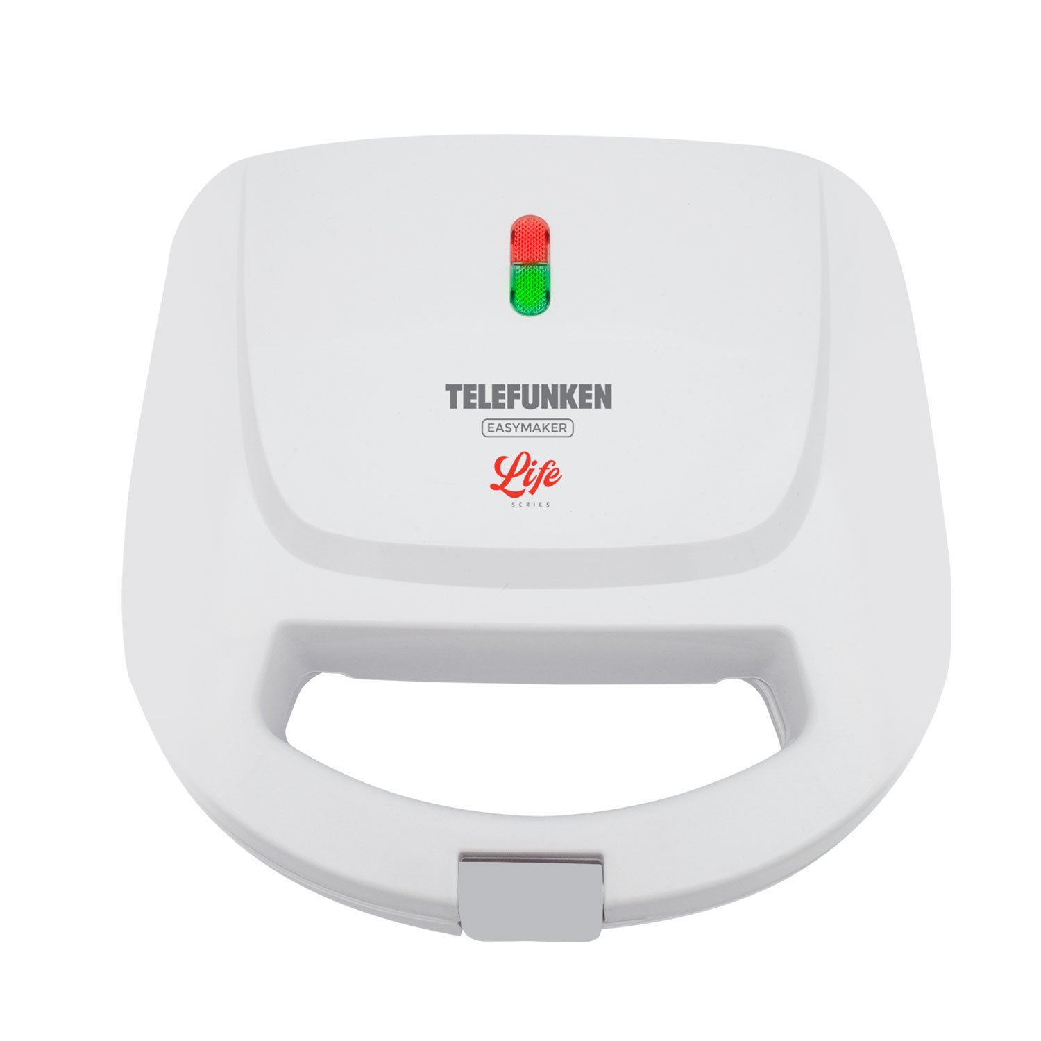 La TFL-EASYMAKER-T de Telefunken es una sandwichera eléctrica con capacidad para 2 panes, su superficie es antiadherente para una fácil limpieza, posee una potencia de 800w, sus manijas son totalmente frías al tacto y posee una traba de seguridad. Su material es apto para preparar todo tipo de sándwiches prensados.