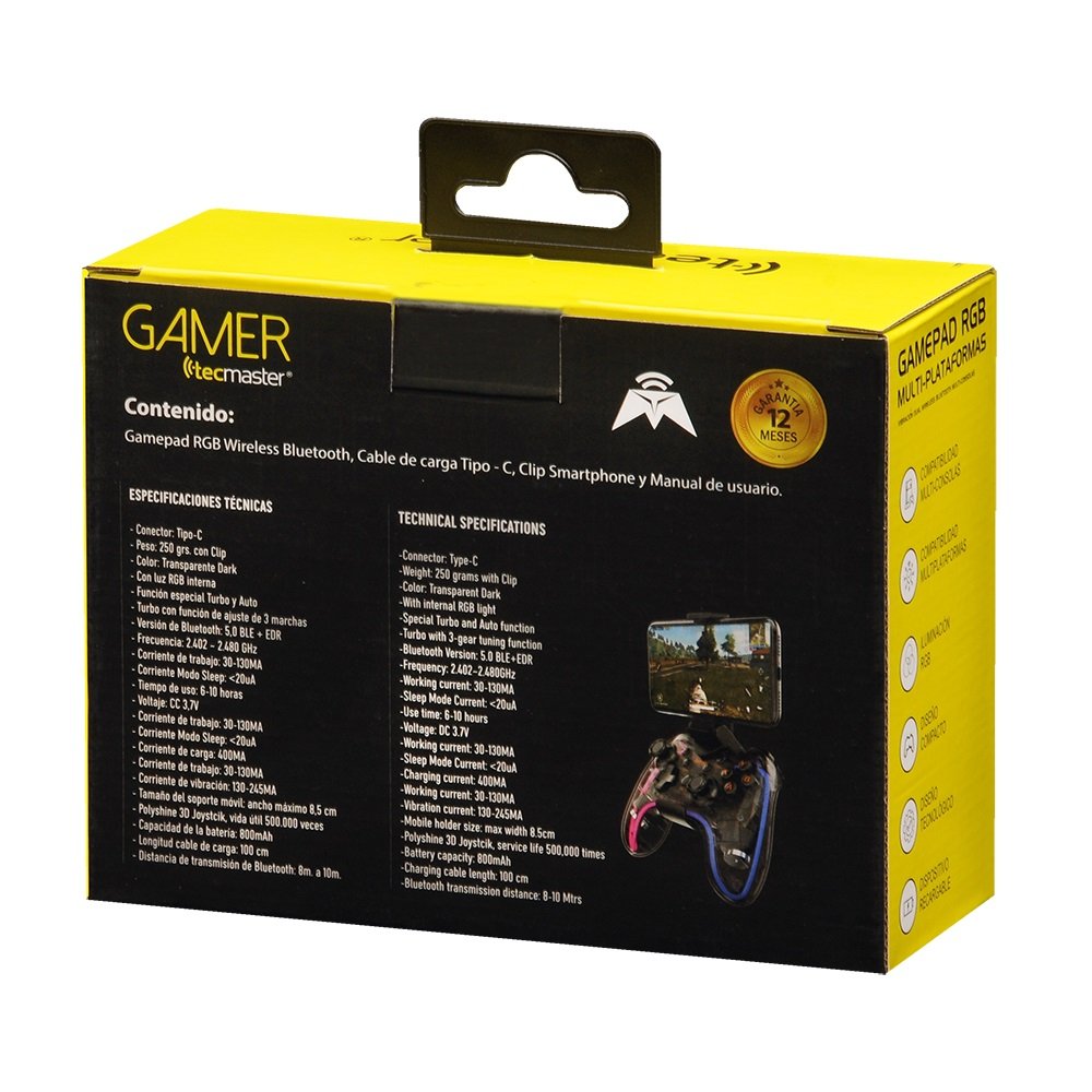 TECMASTER GAMEPAD MULTICONSOLAS Y PLATAFORMAS INALÁMBRICO BLUETOOTH, CON LUZ RGB