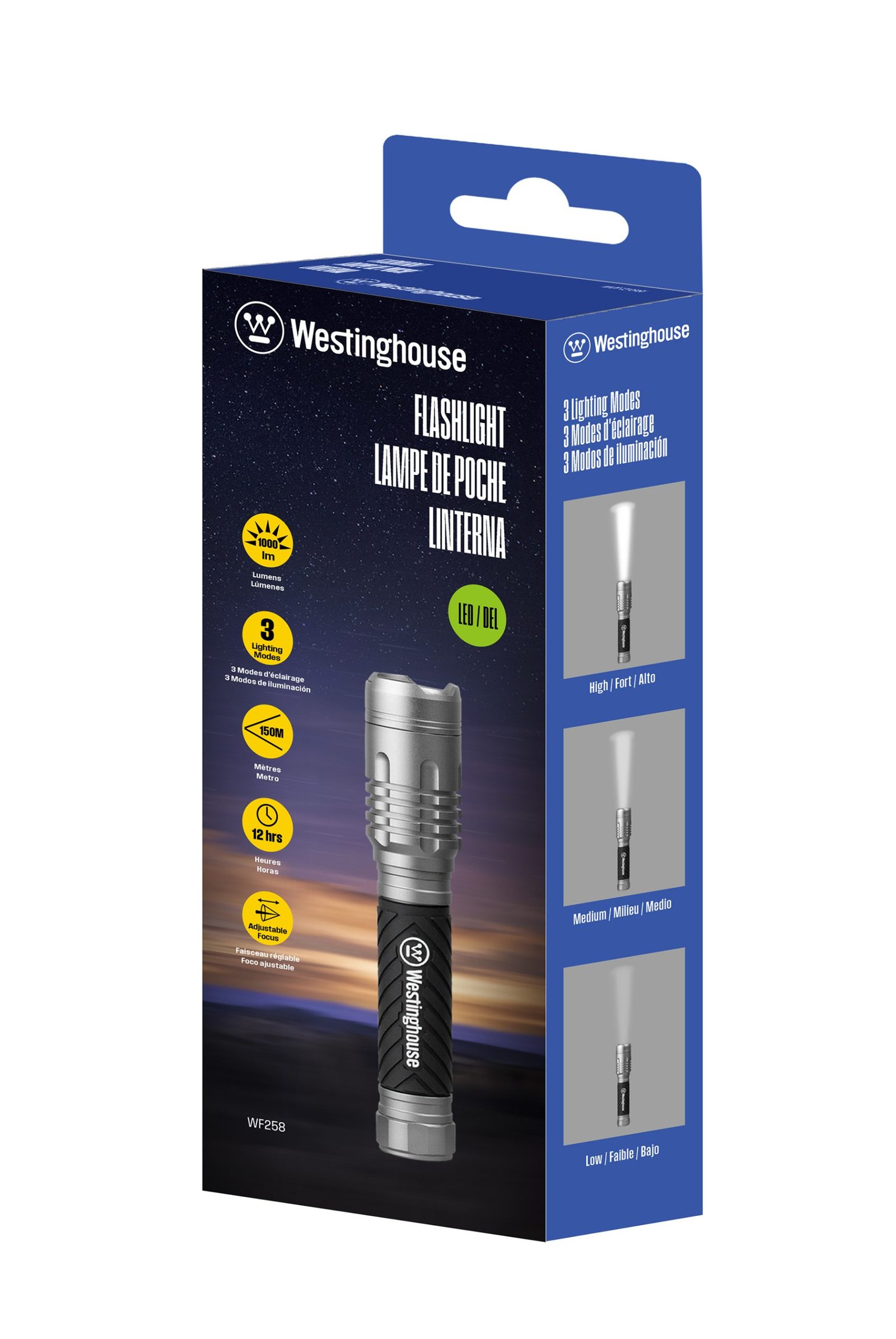Westinghouse WF258 es una linterna LED recientemente lanzada que combina diseño científico con alta confiabilidad. Cuenta con potente salida de lúmenes, 3 modos de iluminación y enfoque de haz ajustable para que puedas convertirlos fácilmente de un foco de observación a larga distancia, iluminando un área amplia en unos segundos. Esta linterna LED es alimentada por baterías AAA ampliamente disponibles y están construidas con robusto aluminio aeronáutico y un agarre antideslizante, lo que la hace un excelente equipo para tener donde quiera que vayas. Ficha Técnica