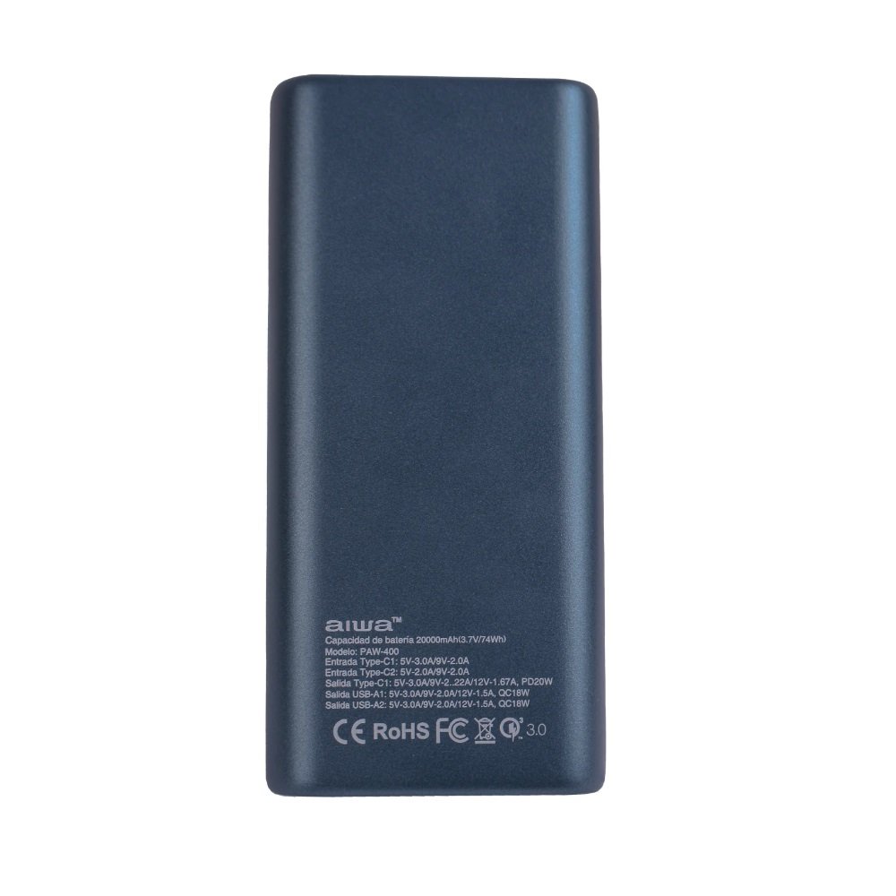 - Capacidad de la batería: 20.000mAh / 3,7V / 74W