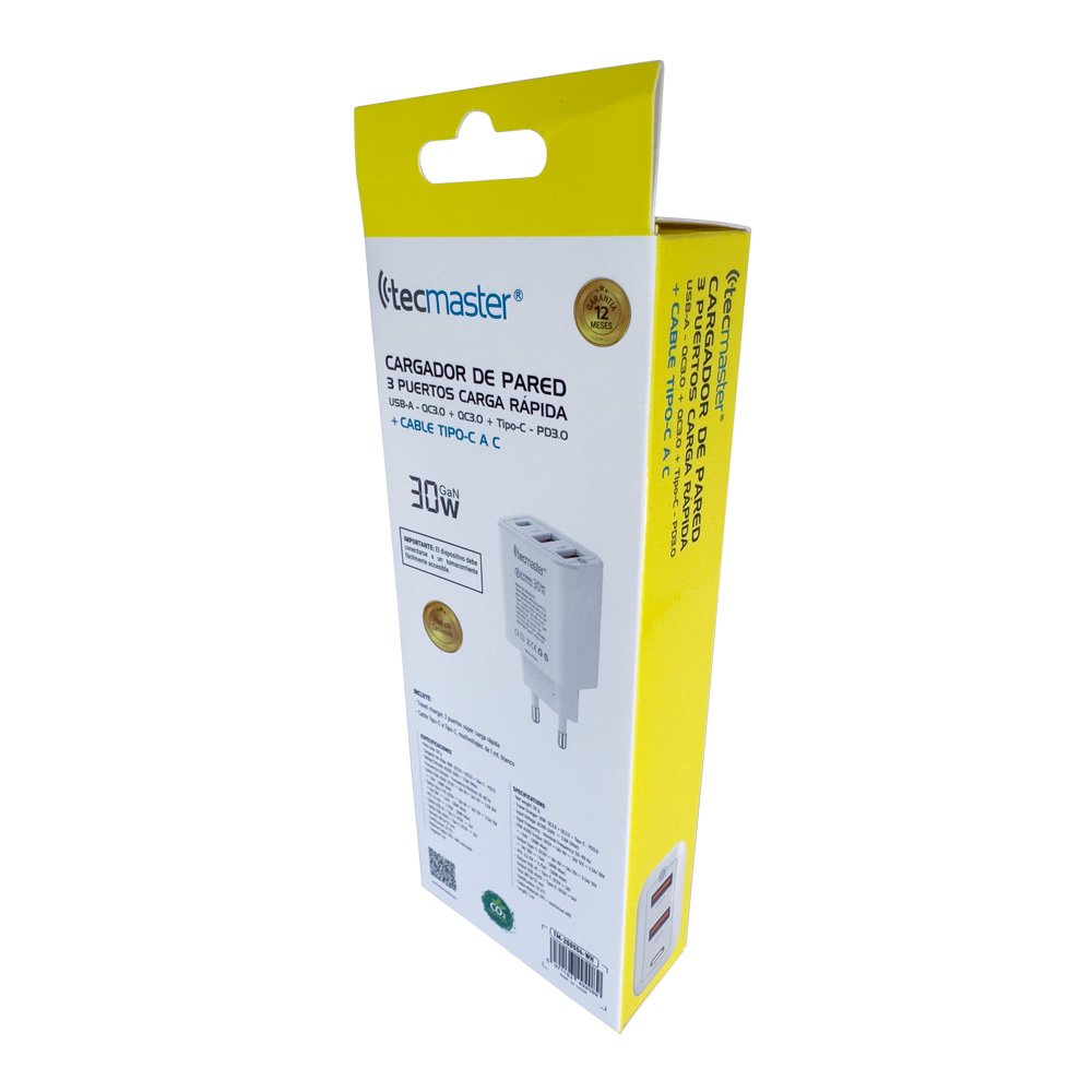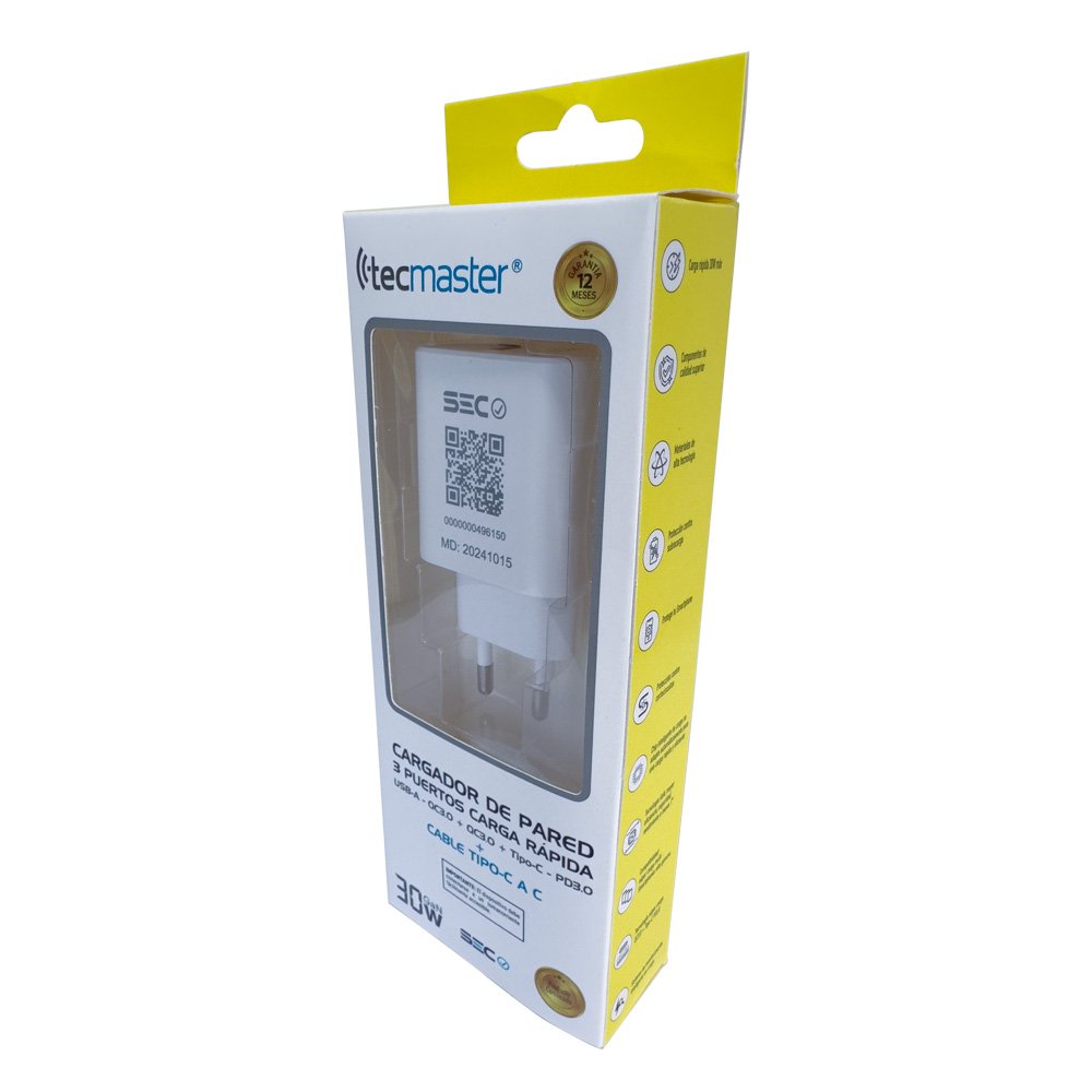 - Cargador de Viaje: 30W–QC3.0 + QC3.0 + Tipo-C – PD3.0