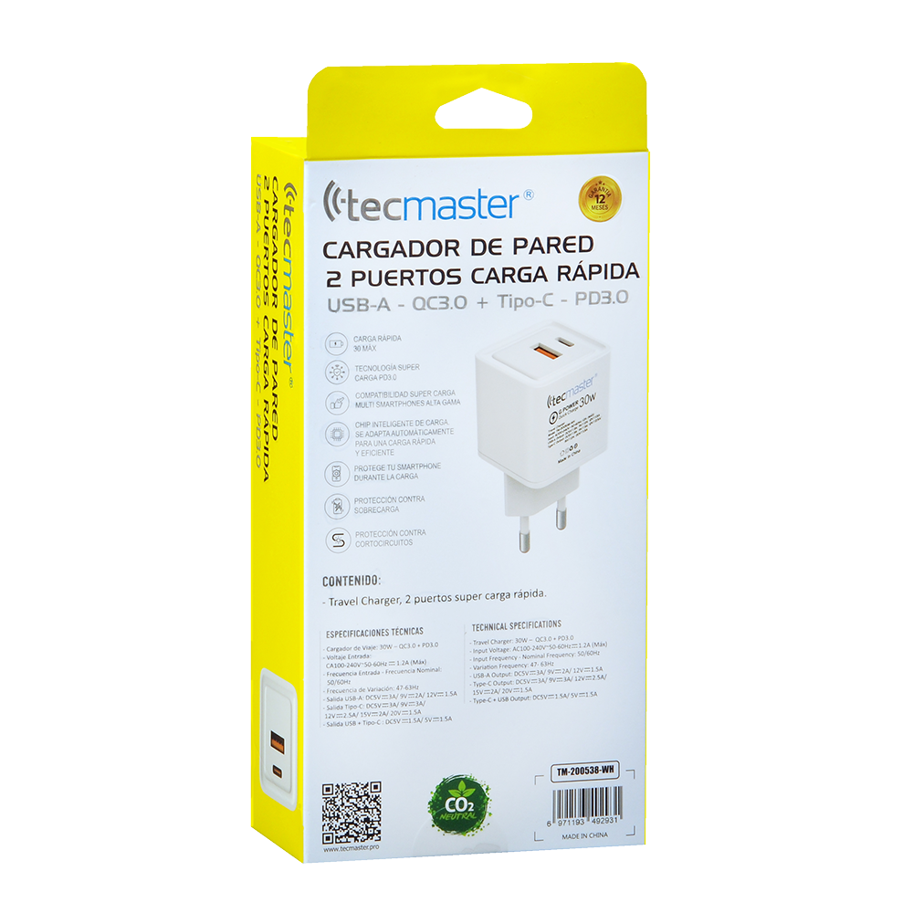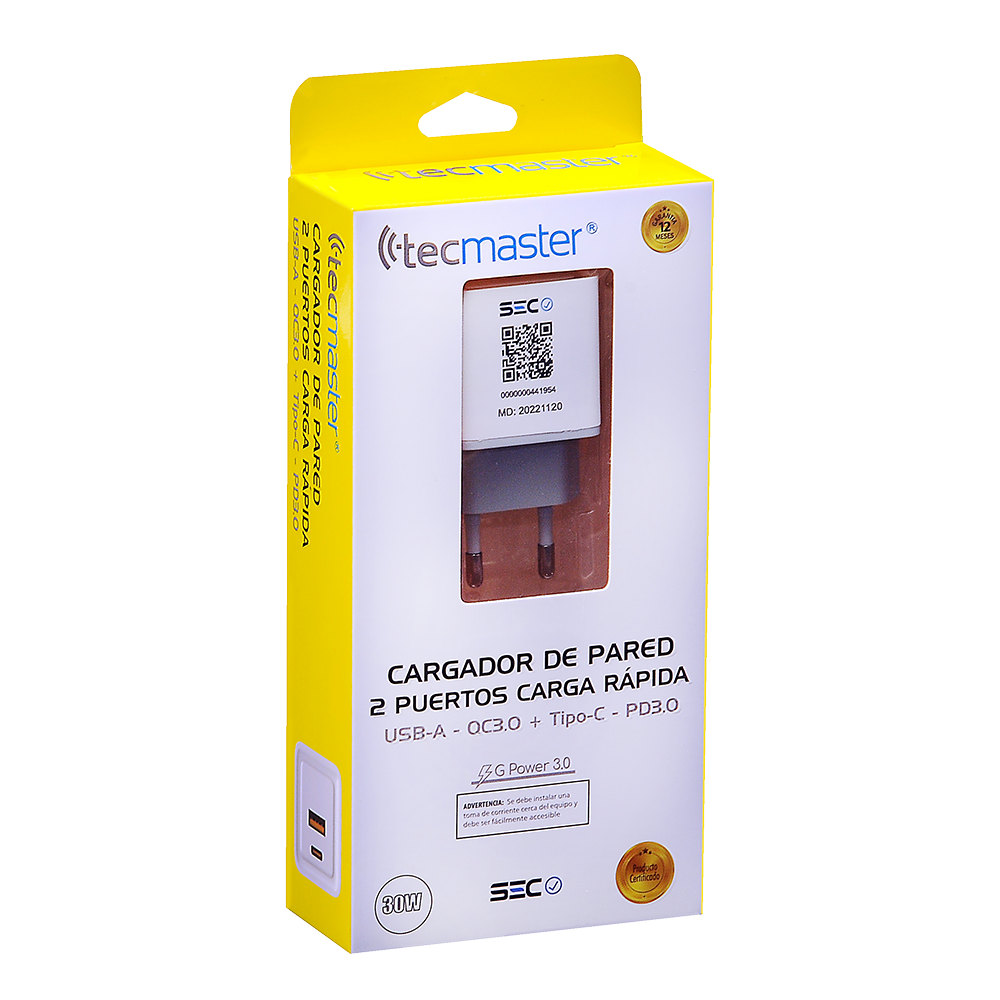 - Cargador de Viaje: 30W – QC3.0 + PD3.0·